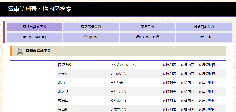 | 京都市営地下鉄 | 京阪電気鉄道 | 阪急電鉄 | 近畿日本鉄道 | 嵐電(京福電車) | |||||